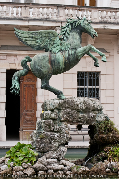 Close-up of Pegasus, the winged horse at the Pegasus Fountain in Mirabell Gardens, Salzburg
