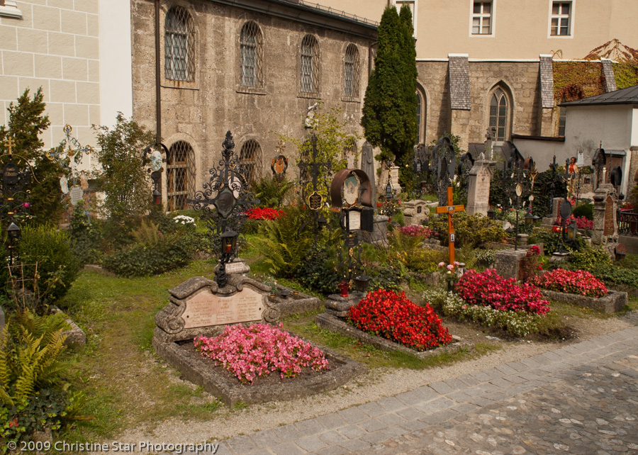 Colourful graves in St. Peter's Cemetery, Salzburg