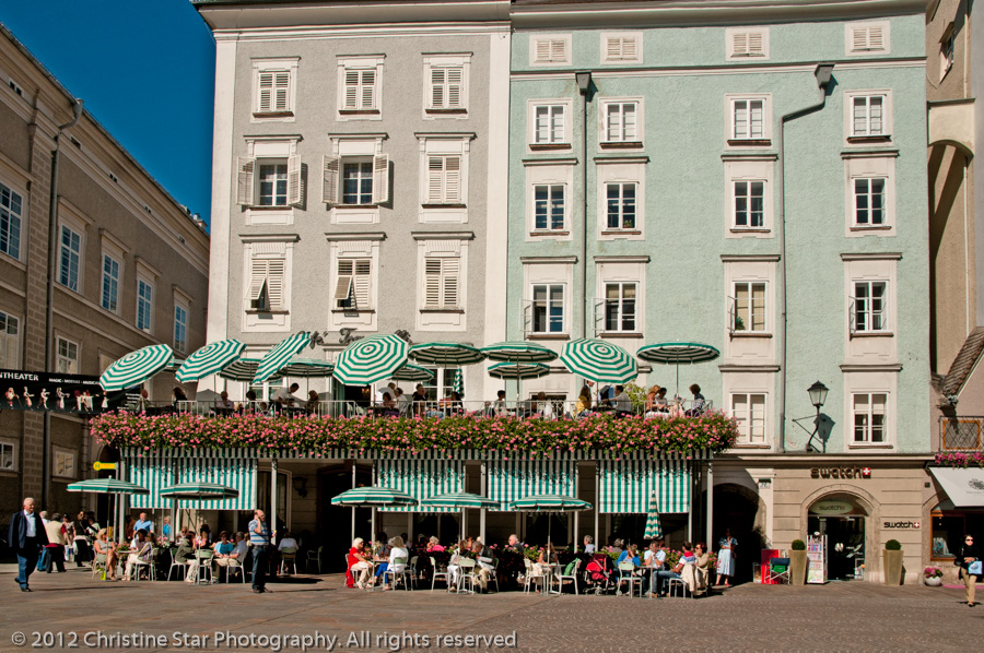 Dining outside on either the terrace or sidewalk at the famous Café Tomaselli in Salzburg